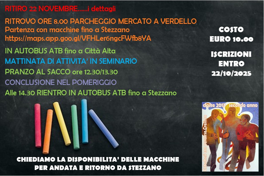 Ti manderemo sempre le informazioni e abbiamo già una proposta per te: sabato 25 ottobre primo incontro dell'anno.